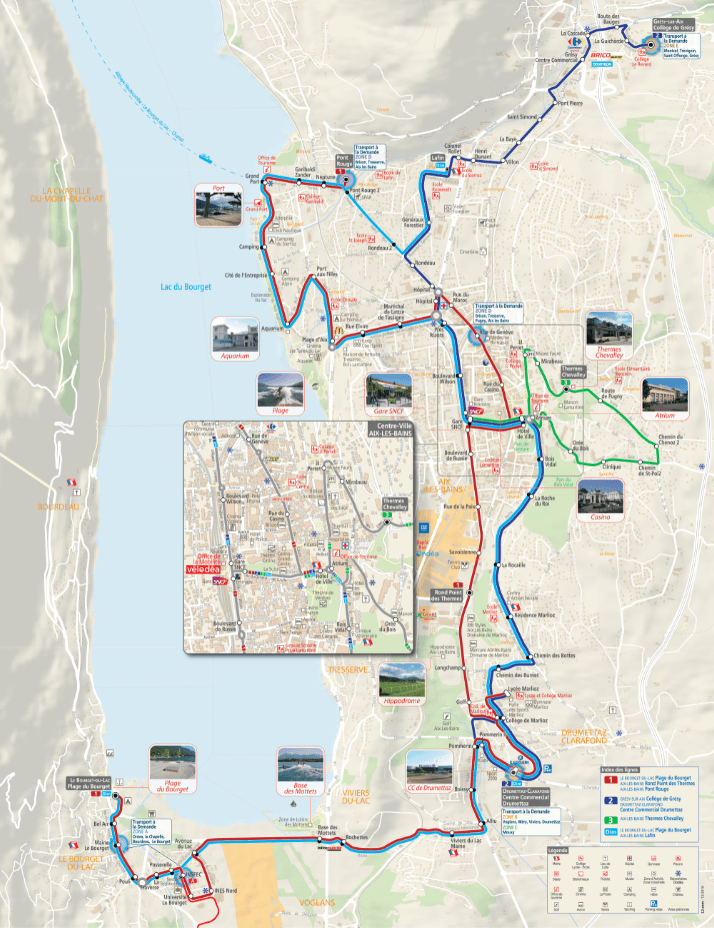 La compagnia di autobus ONDEA serve numerose stazioni di AIX LES BAINS: centro città, terme, lago, ecc.