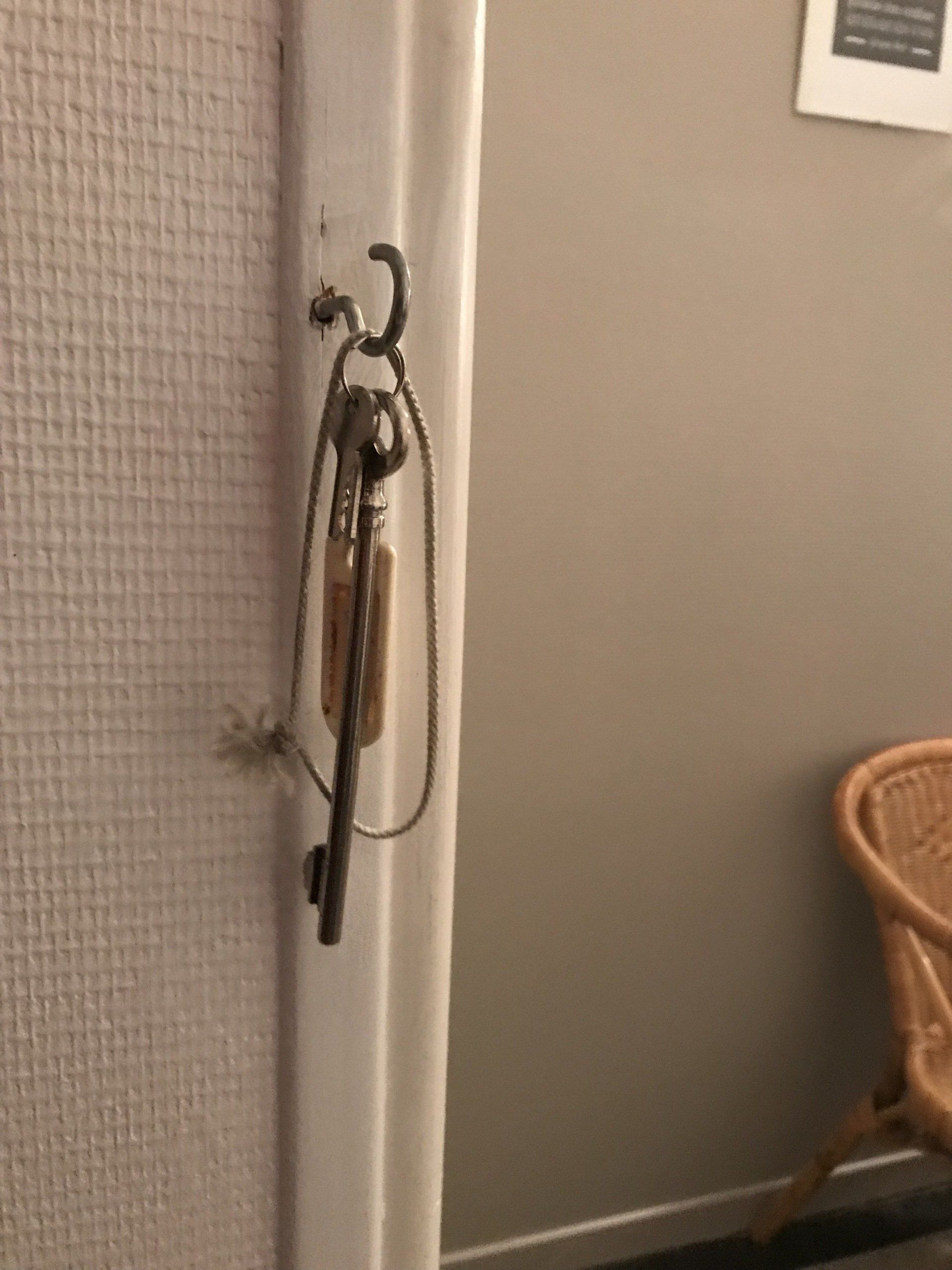 la clé de la cave est accrochée derrière la porte du couloir