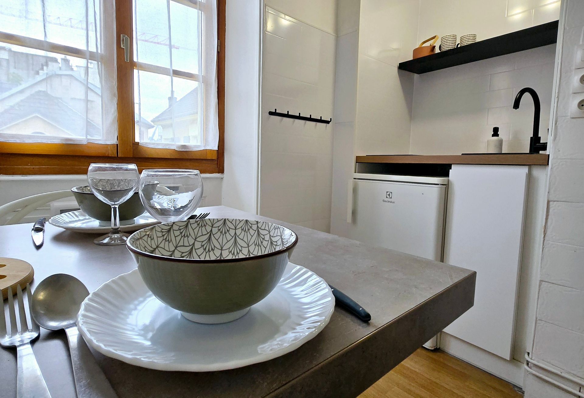 "Studio très calme dans les rues piétonnes d'Aix les Bains, en plein centre ; lumineux et agréable". Chantal