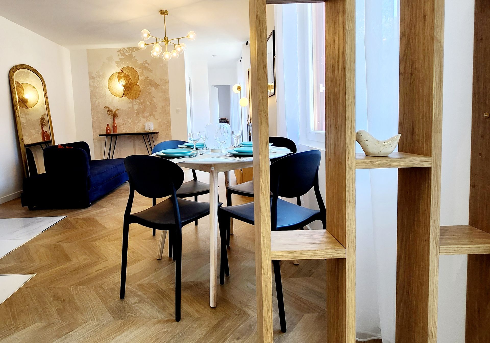 Notre appartement LE 56 BLEU BOURGET, entièrement rénové et soigneusement décoré, offre un espace fonctionnel, spacieux et chaleureux. C’est un lieu idéal pour se sentir chez soi tout en profitant d’un confort optimal. Il est classé 3*